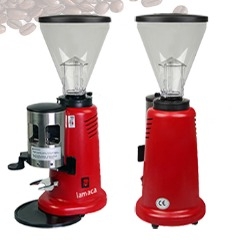 Thân máy MX-8A Lamaca làm bằng hợp kim nhôm Aluminum không gỉ, bền và chắc, phễu chứa hạt cafe bằng nhựa không ABS an toàn thực phẩm, và Doser chứa bột cafe sau khi xay làm từ thép không gỉ.