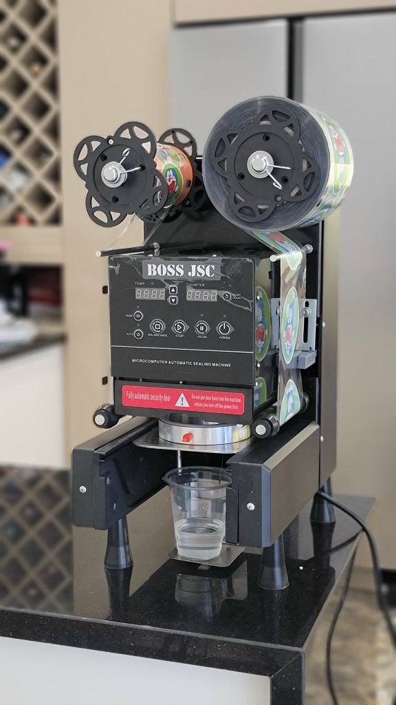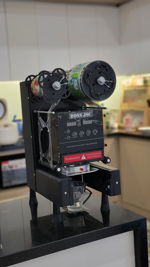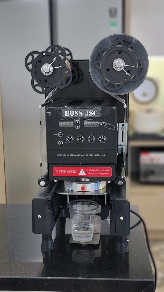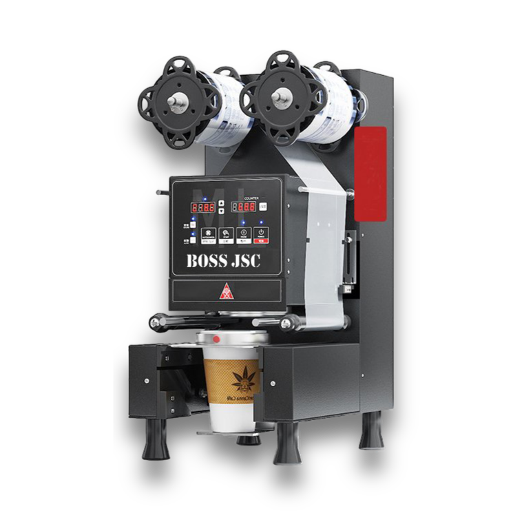 Máy dập cốc BOSS JSC vận hành tự động 100%, hỗ trợ bạn thực hiện mọi công đoạn, từ khâu đẩy cốc vào khuôn, dập cốc và nhả cốc, bạn không phải mất công sức thao tác trên máy. Chỉ sau 2 giây bạn đã có ngay thành phẩm là cốc đồ uống hấp dẫn với miệng cốc được dập gọn gàng, kín kẽ và đẹp mắt.