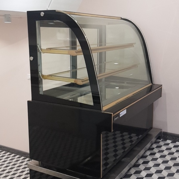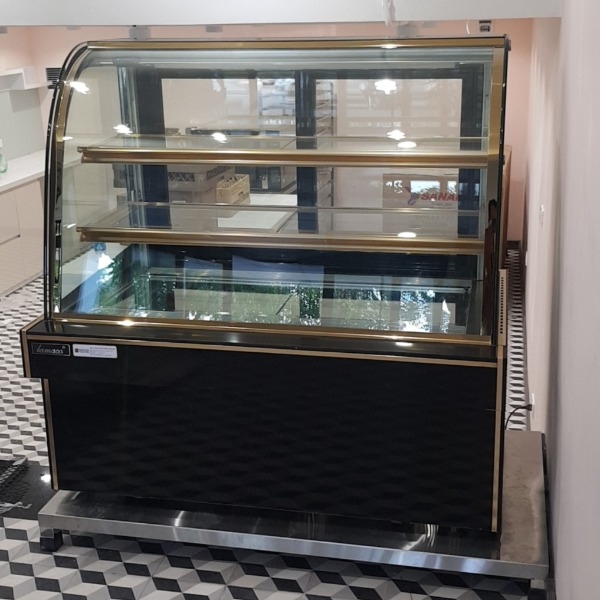 Không dừng lại ở tính năng bảo quản, tủ bánh còn là thiết bị trưng bày giúp các sản phẩm bánh kem trở nên thu hút, hấp dẫn hơn nhờ hệ thống đèn chiếu sáng hiện đại và mặt kính chất lượng cao, sáng bóng. Ngoài ra, tủ bánh còn mang thiết kế rất trang nhã, tinh tế với phần đế đá và mặt kính cong mềm mại, nhẹ nhàng mang tính thẩm mỹ cao. Nhờ đó, khi sử dụng thiết bị, không gian cửa hàng sẽ càng trở nên nổi bật, sang trọng và thu hút nhiều khách hàng hơn.